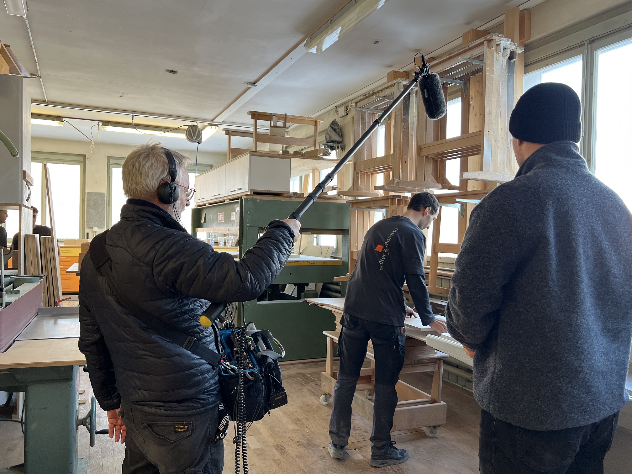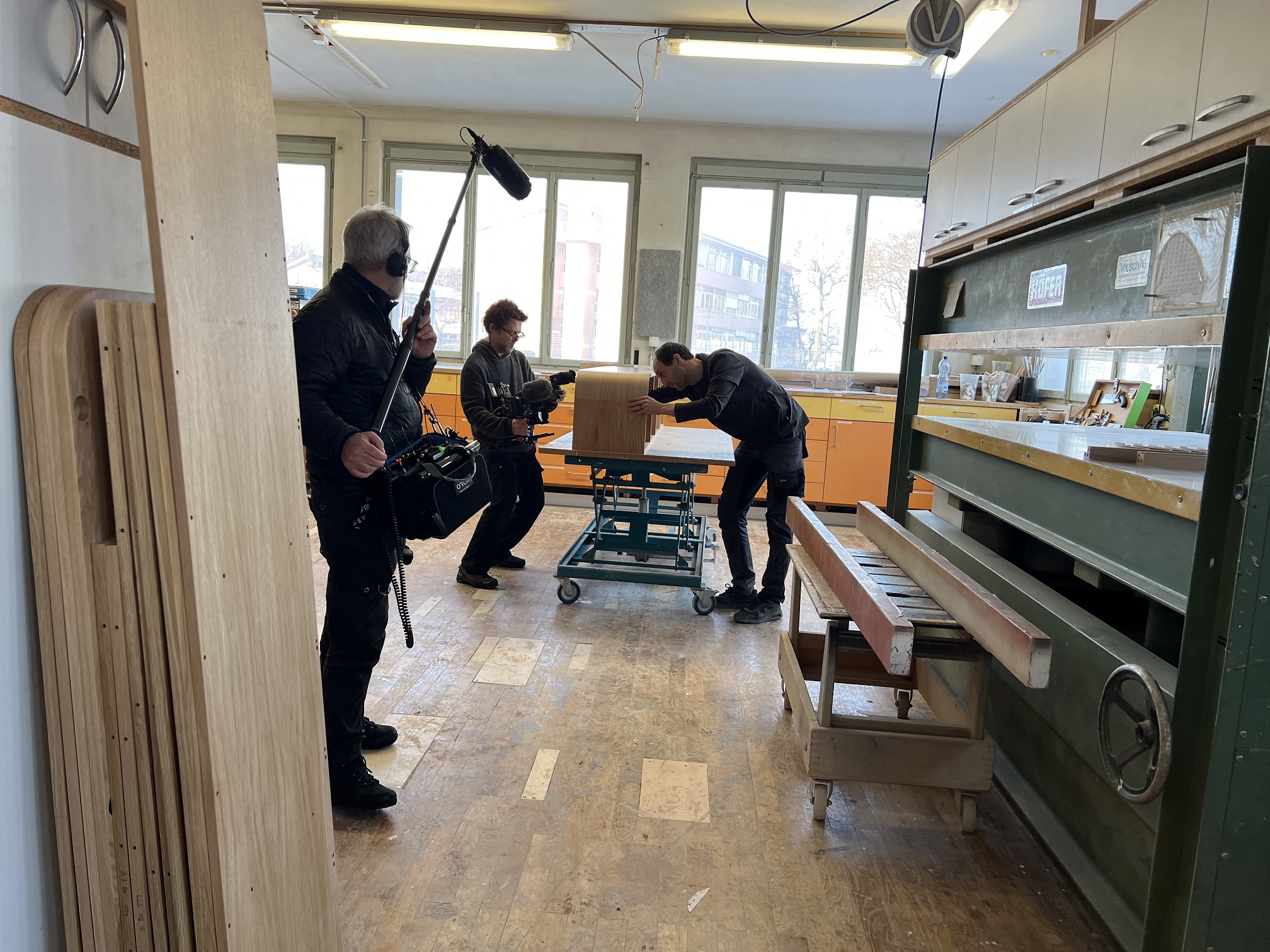 Dreharbeiten in unserer Schreinerei. Hier entsteht das Sideboard für die Familie in St. Gallen
