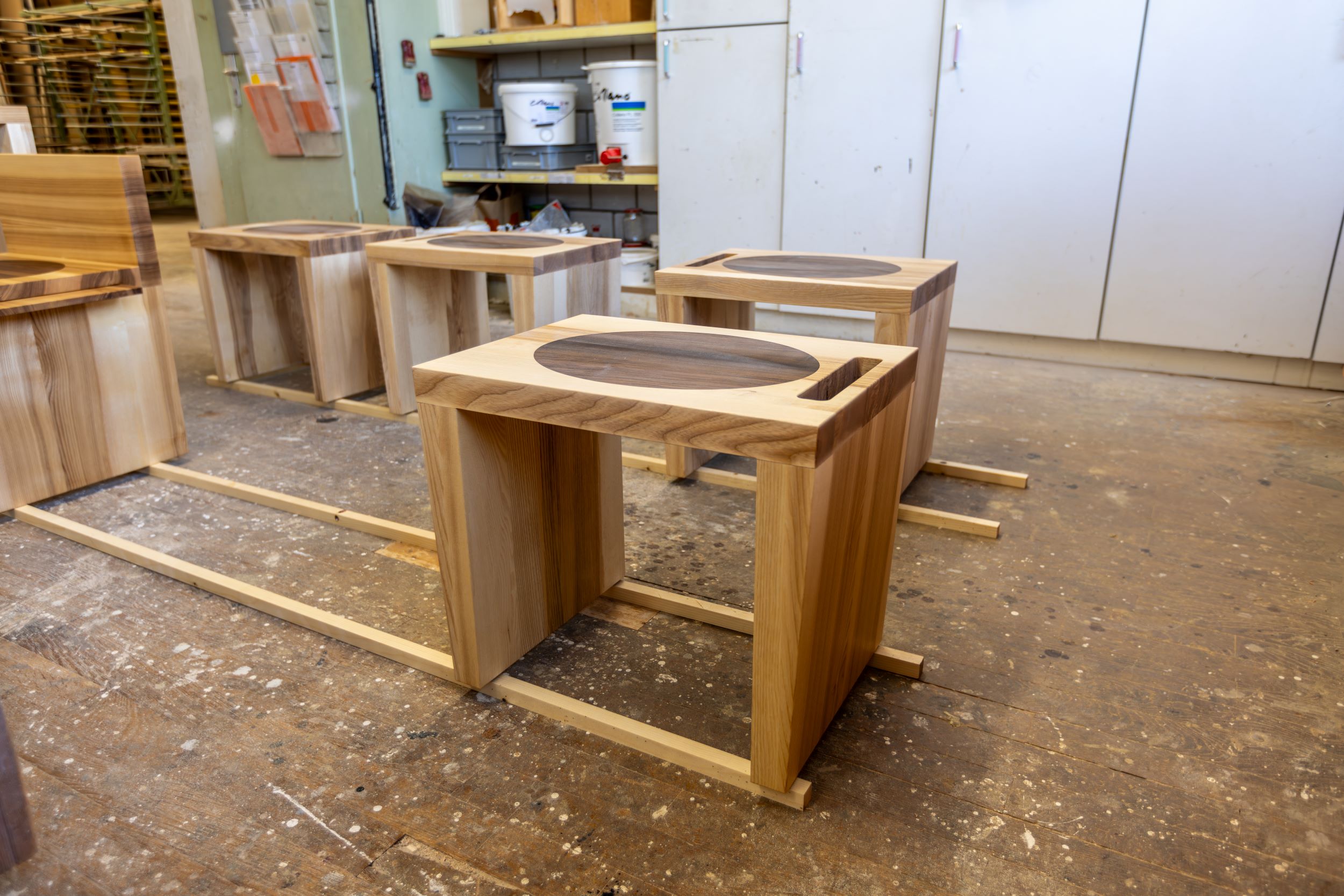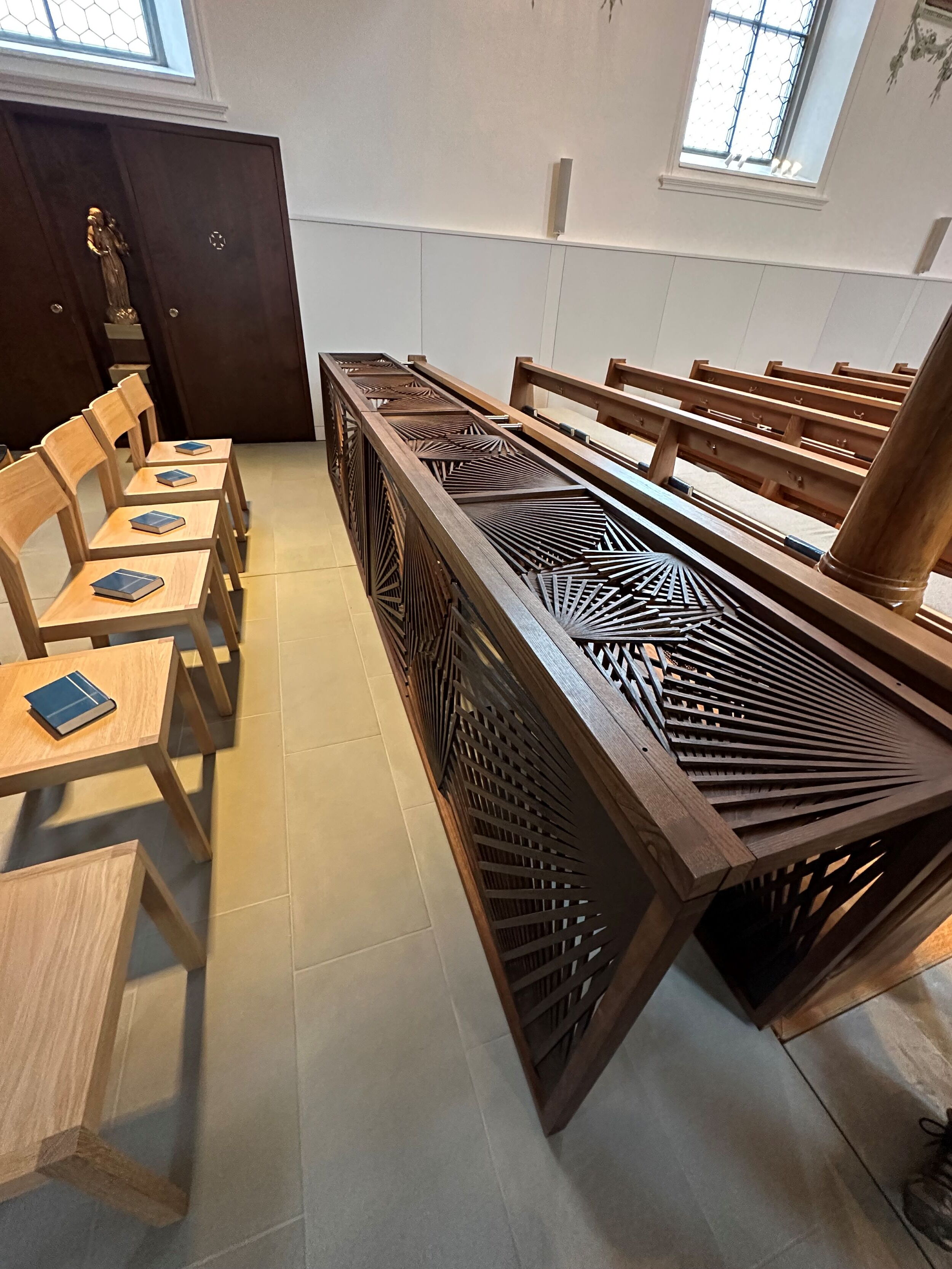 Die Sedilien, wie auch die anderen Einrichtungsobjekte, die wir herstellten, bestehen aus Kernesche, die entlang der Sitter in Wittenbach gewachsen ist. Die dunklen Möbel wurden gebeizt. Damit wir einheimisches Holz verwenden konnten, mussten wir bereits ein Jahr im Voraus bekannt geben, wie viel Holz wir für die Arbeiten benötigen würden. Dann wurden die Bäume gefällt, geschnitten und das Holz getrocknet. Dies erforderte eine sorgfältige Planung, aber glücklicherweise ist alles reibungslos verlaufen.