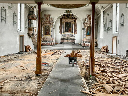 Die Kirche St. Ulrich, die im Jahre 1675 und 1676 erbaut wurde, wurde nun zum vierten Mal renoviert. Welche Aufgaben hatte eure Schreinerei bei diesem Projekt?