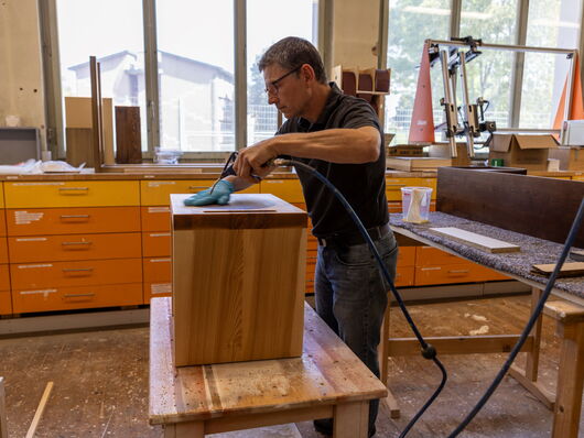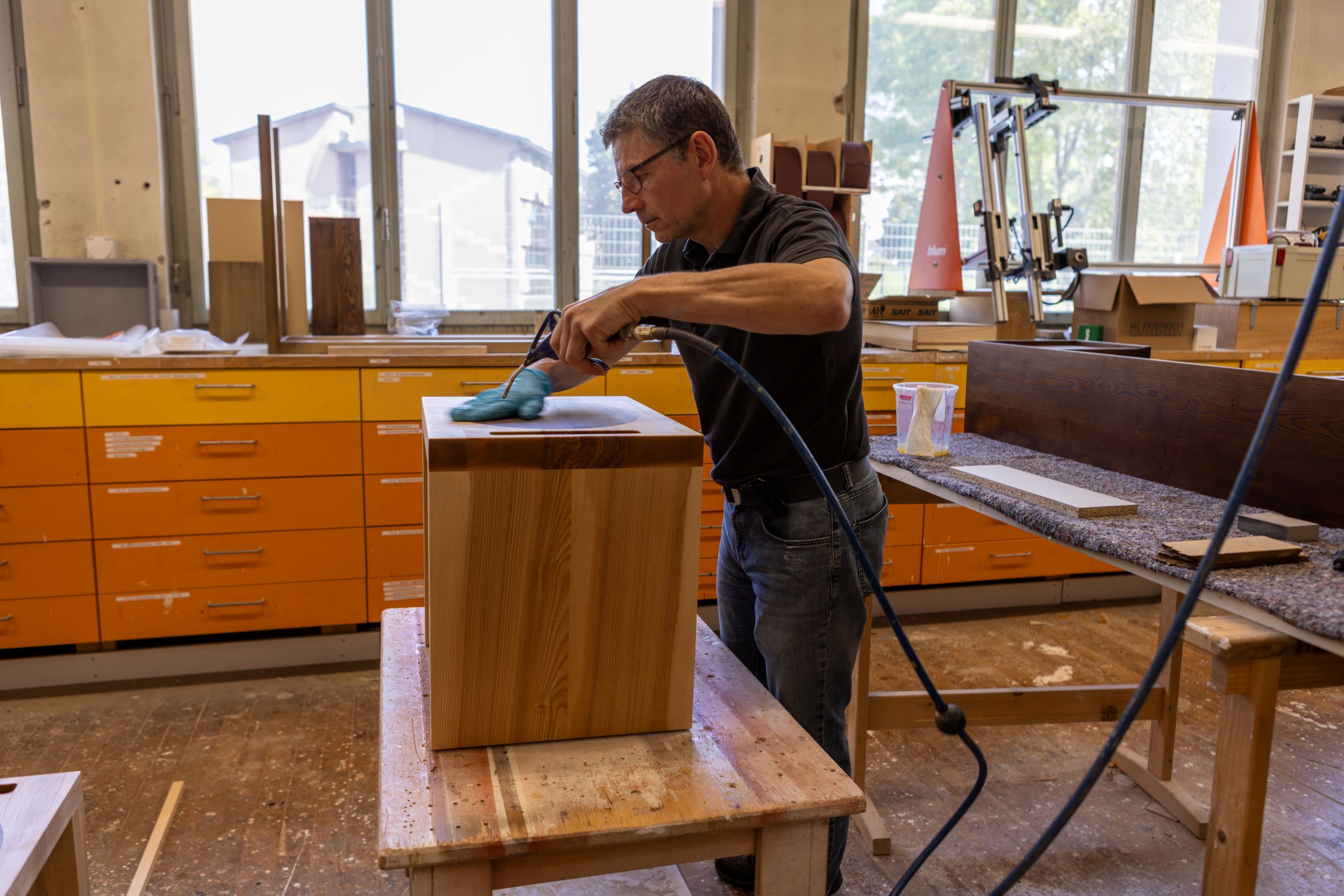 Die logistische Herausforderung war sicherlich erheblich, da wir die Kirchenbänke rund ein Jahr lang lagerten. Doch auch die Details spielten eine wichtige Rolle, um sicherzustellen, dass alles reibungslos funktionierte, optimal aussah und den Anforderungen entsprach. Die Kirchenbänke bestehen aus zwei verschiedenen Holzarten, Eiche und Fichte. Die Eiche beispielsweise ist gerbsäurehaltig, was bei der Oberflächenbehandlung berücksichtigt werden musste. Wir haben dann im Voraus einige Muster hergestellt und hatten eine sehr gute Zusammenarbeit mit unserem Lieferanten für Oberflächen.