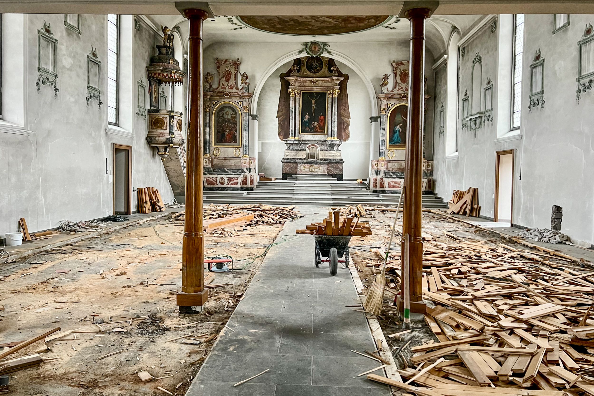Das Bauprogramm war gut geplant, und wir hatten ausreichend Zeit, die wir auch benötigt haben. Gegen Ende der Bauphase wurde die Logistik erneut herausfordernd, als wir die Bänke zurück in die Kirche transportieren mussten.